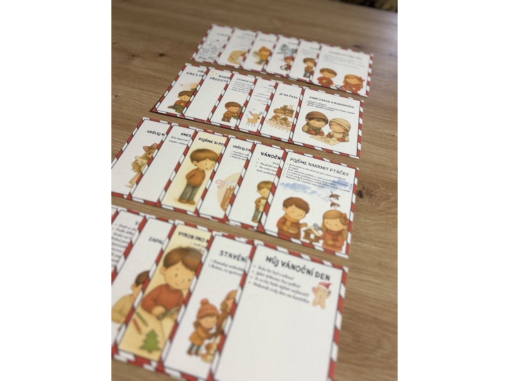 - 24 kartiček s úkoly na každý den do Štědrého dne